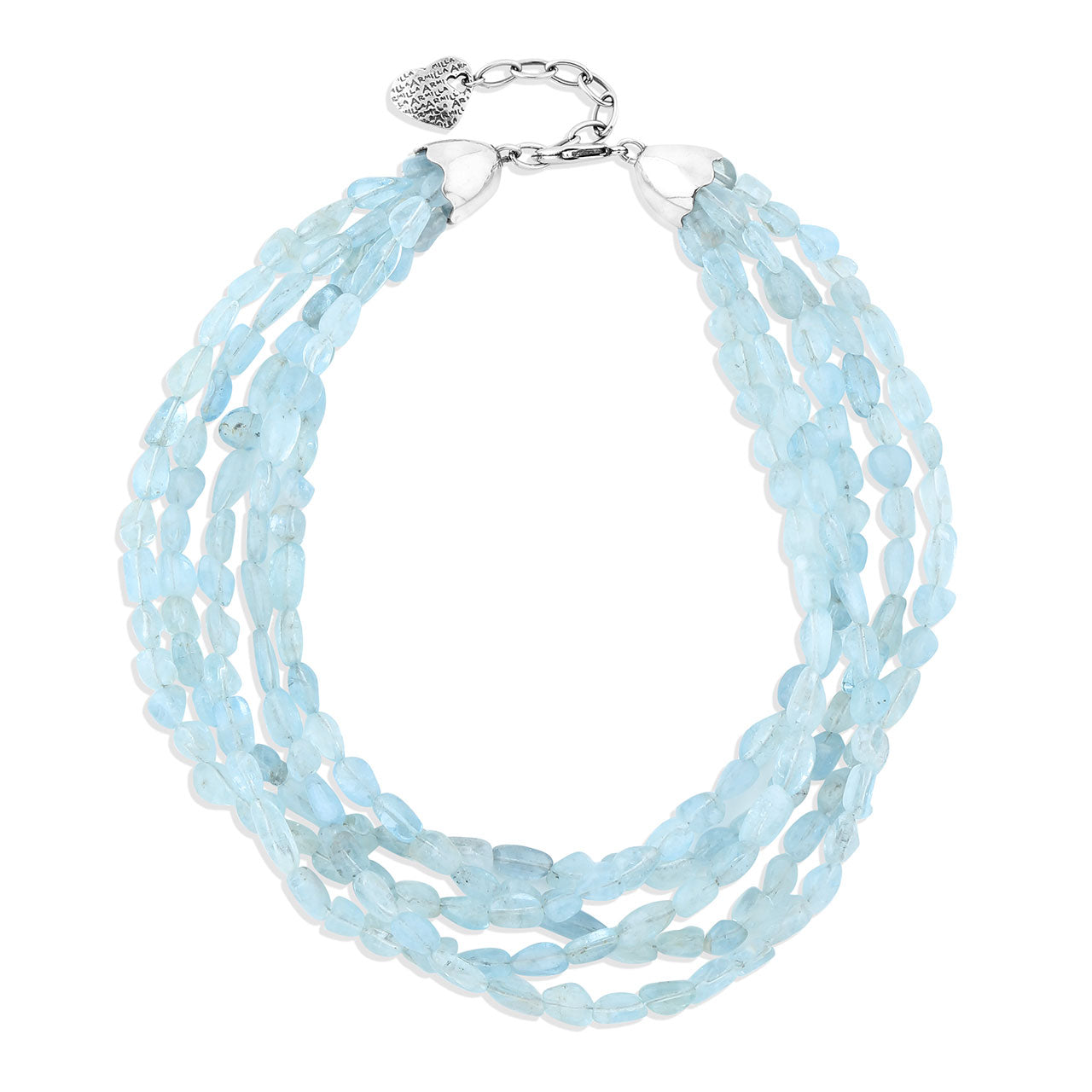 Feel the ocean breezes with this elegant Aquamarine necklace. Hand-strung with rows of authentic Aquamarine beads, the precious stone of the sea. This beautiful stone evokes the purity of crystalline waters, the exhilaration and relaxation of the ocean.